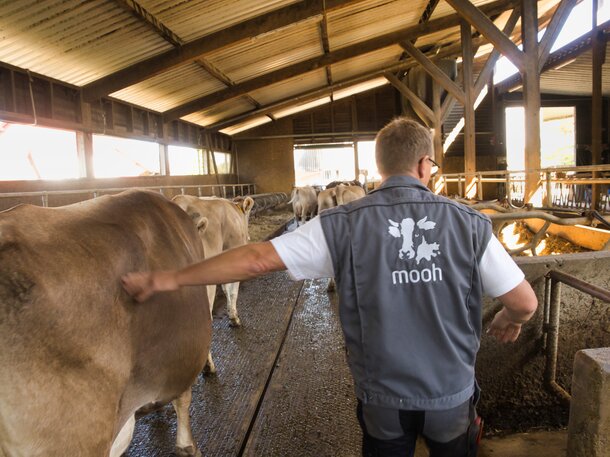 Auf dem Betrieb der Familie Hübscher fällt auch der einfache Stall auf. Martin sagt schmunzelnd «Zum Glück hatten wir damals nicht mehr Geld, um komplizierter zu bauen». Die Familie hat damals den Betrieb ausserfamiliär übernommen und musste danach gleich investieren. Er hatte sich zum Beispiel gegen einen Luft- und Lichtfirst entschieden, sondern ein versetztes Dach gebaut, was denselben Zweck erfüllt. Auch haben Hübschers ein Gefälle im Stall – damals, damit sie weniger Aushub machen mussten, heute zeigt sich das aber als klarer Vorteil im Arbeitsablauf. Auch hatte er bereits damals den Melkstand im anderen Stall und den Warteraum auf dem Laufhof gemacht – das hatte er in Neuseeland entdeckt und gleich zuhause umgesetzt. «Man muss manchmal auch etwas über den Tellerrand hinaussehen und kann so sehr praktische Tipps mitnehmen», schliesst Martin ab.