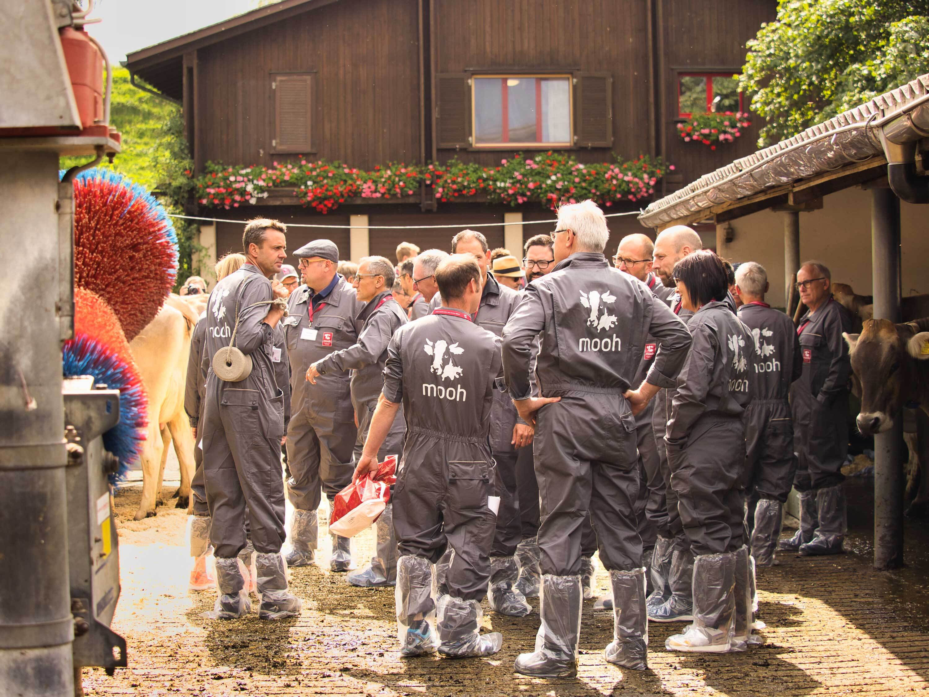 Les 5 ans de mooh ont bien sûr été fêtés dignement : Les producteurs ont bénéficié d'une délicieuse boîte Cheezy, les employés ont profité d'un vaste événement d'équipe et les transporteurs ont été invités à un événement leur étant dédié.. Les clients ont pu fêter l'événement dans le style mooh : fin août, ils ont été invités au Mattenhof à Flawil sur une exploitation mooh. L'homme qui murmure à l'oreille des vaches, Christian Manser, a montré aux clients tout le travail qui se cache derrière un litre de lait. Ensuite, les clients se sont consacrés intensivement à une vache du groupe et ont préparé sa présentation dans l'arène. Ils y ont convaincu le public des avantages de leur vache. La meilleure vache a été choisie par un jury de haut niveau composé de Lisa Stoll, Hanspeter Kern et Robert Bischofberger et par un vote pour la meilleure photo de groupe. « Pour nous, c'était un après-midi et une soirée absolument réussis. Nos clients ont vu combien il faut pour produire un seul litre de lait. Cela nous rapproche également d'eux et, ensemble, nous pouvons atteindre nos objectifs », résume M. Hübscher.