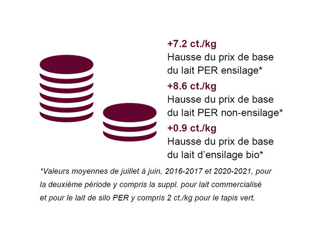 mooh a fêté son 5e anniversaire à la mi-2021. Au cours de ces cinq premières années, des succès respectables ont été enregistrés : « En cinq ans, nous avons pu augmenter le prix du lait ensilage PER de plus de 7 centimes par kilogramme », déclare fièrement Martin Hübscher, président de mooh. Les autres sortes de lait ont également connu une bonne évolution avec une augmentation de 8,6 centimes par kilogramme pour le lait non-ensilage PER et de 0,9 centime par kilogramme pour le lait ensilage bio. En particulier lors de la pandémie de Corona, mooh a réussi à utiliser pleinement ses atouts au profit de ses membres. « Avec plus de 60 clients, nous avons une base clientèle solide et avons pu réagir de manière optimale aux variations de la demande », explique René Schwager, directeur général. « De plus, étant donné que nous sommes totalement indépendants en tant qu'organisation de producteurs, nous avons canalisé le lait vers les canaux à haute valeur ajoutée », indique René Schwager. Martin Hübscher ajoute : « Et les revenus supplémentaires ainsi obtenus sont allés directement à nos membres sous la forme d'un prix du lait plus élevé. »