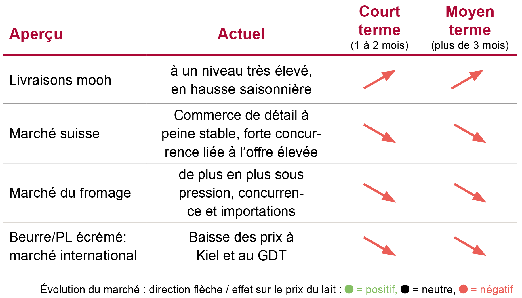 Les causes de cette chute de prix inattendue sont multiples. Ce qui est certain, c’est qu’à l’étranger aussi, tout comme en Suisse, la production laitière est extrêmement élevée. Ces volumes importants rencontrent une demande stable. À long terme, les besoins restent soutenus par la croissance démographique et la consommation par habitant, mais à court terme, la suroffre domine. La forte baisse des prix à l’étranger détériore encore les perspectives d’exportation. Malgré les mesures de soutien décidées, les exportations deviennent encore moins attractives à cause des prix plus bas à l’étranger.
